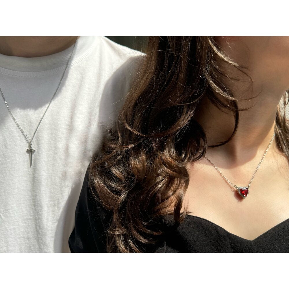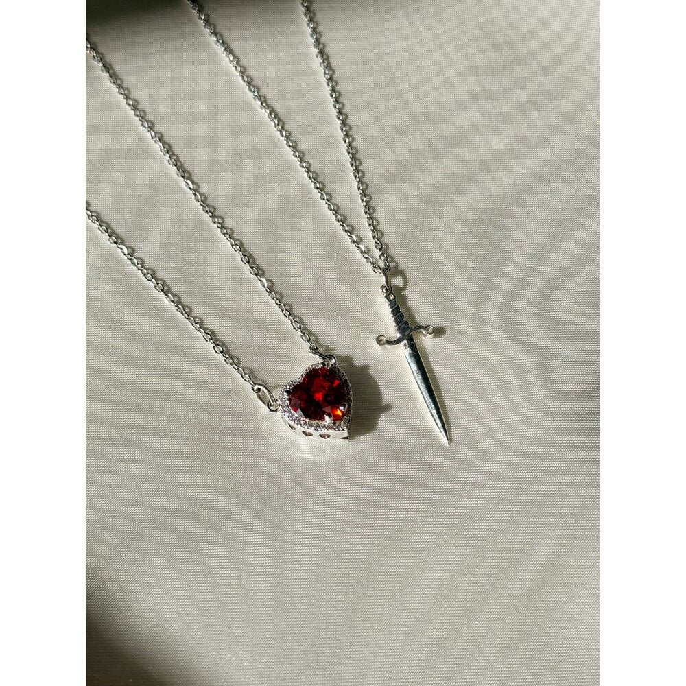 Bu özel kolye seti, aşkın hem kırılganlığını hem de gücünü temsil ediyor. Kalp; sevgiyi ve bağlılığı simgelerken, kılıç; korumayı ve sadakati ifade ediyor. Sevgilinizle paylaşabileceğiniz en anlamlı hediye, birlikte taşıyabileceğiniz en özel bağ olacak.