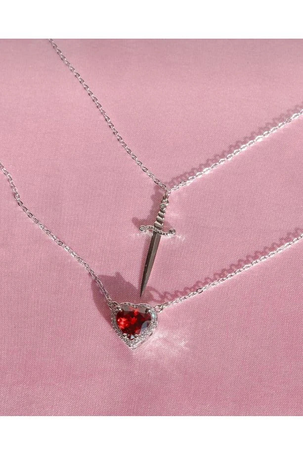 Bu özel kolye seti, aşkın hem kırılganlığını hem de gücünü temsil ediyor. Kalp; sevgiyi ve bağlılığı simgelerken, kılıç; korumayı ve sadakati ifade ediyor. Sevgilinizle paylaşabileceğiniz en anlamlı hediye, birlikte taşıyabileceğiniz en özel bağ olacak.